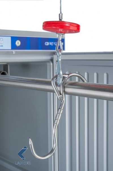 The winch hook! Made from rust-proof stainless steel . With ring, ideal for easy pulling up with the cable winch, without the annoying hanging up like with normal swivel hooks.
